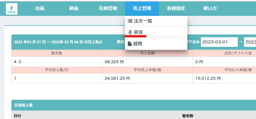 売上管理 | PATDELの使い方
