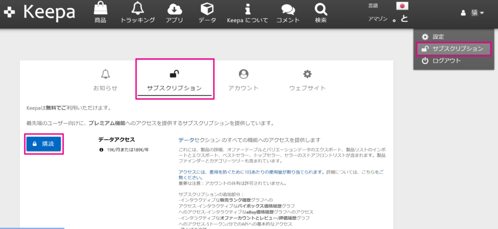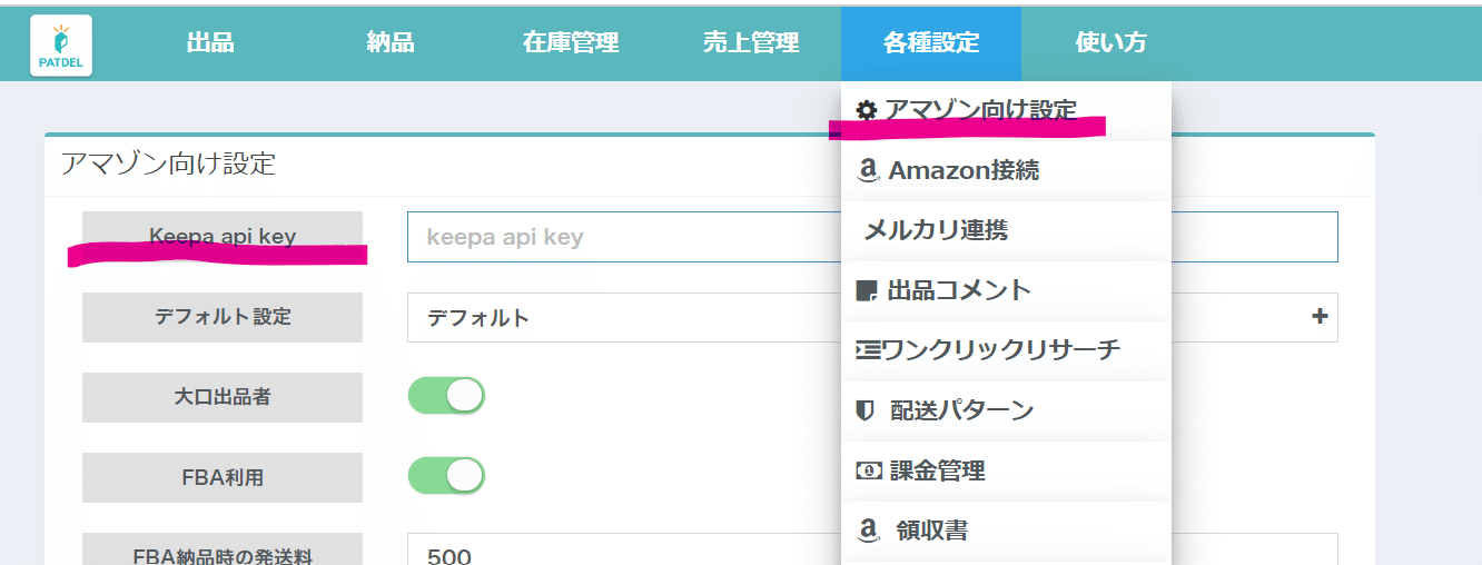 Keepaを連携(Keepaの有料プランに入ることが条件)することで、PATDELで検索した商品のAmazonランキングとカート価格を表示できるようになります。">